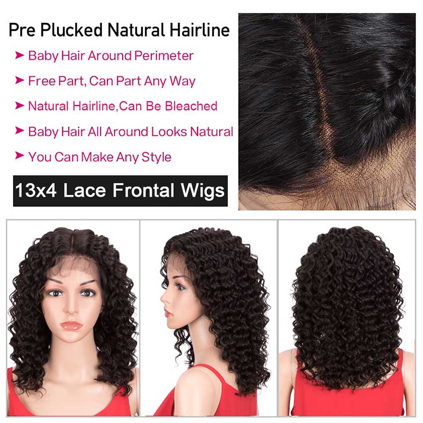 Rebecca Fashion 13x4 Lace Front Wigs Human Hair Deep Wave Wigs 150% Density Natural Black Color