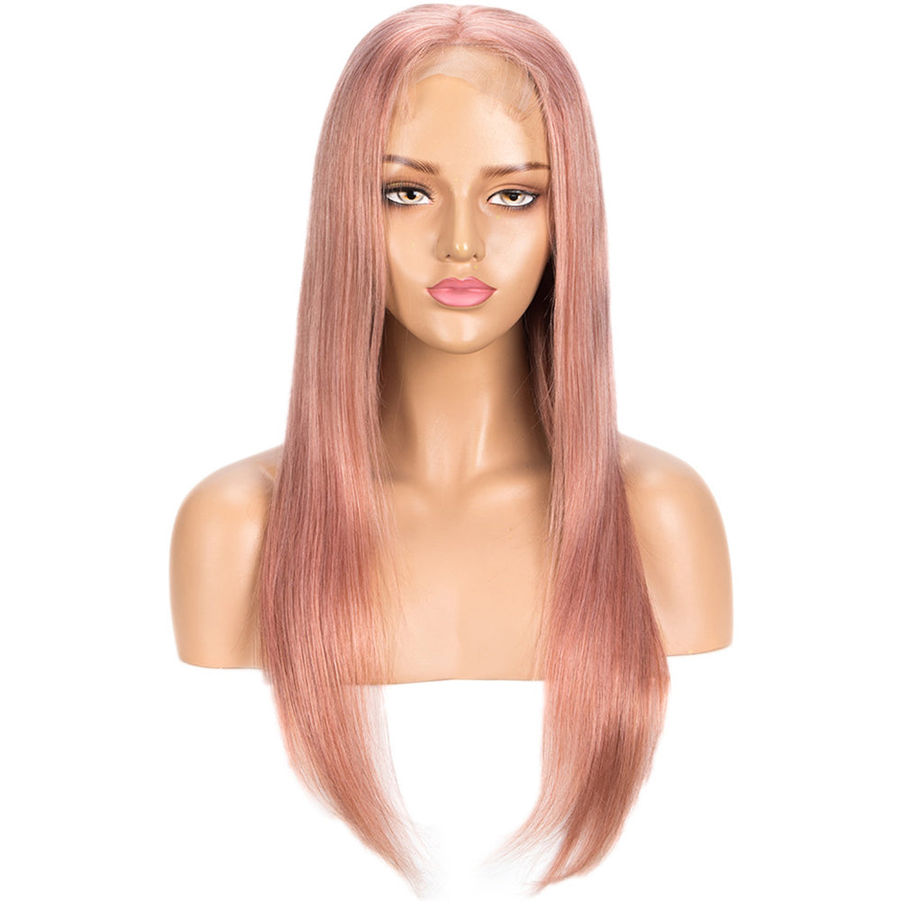 Rebecca Fashion Highlight Pink 4x4 Lace Simulated Scalp Wigs 100% Straight Human Hair Wigs 150% Density