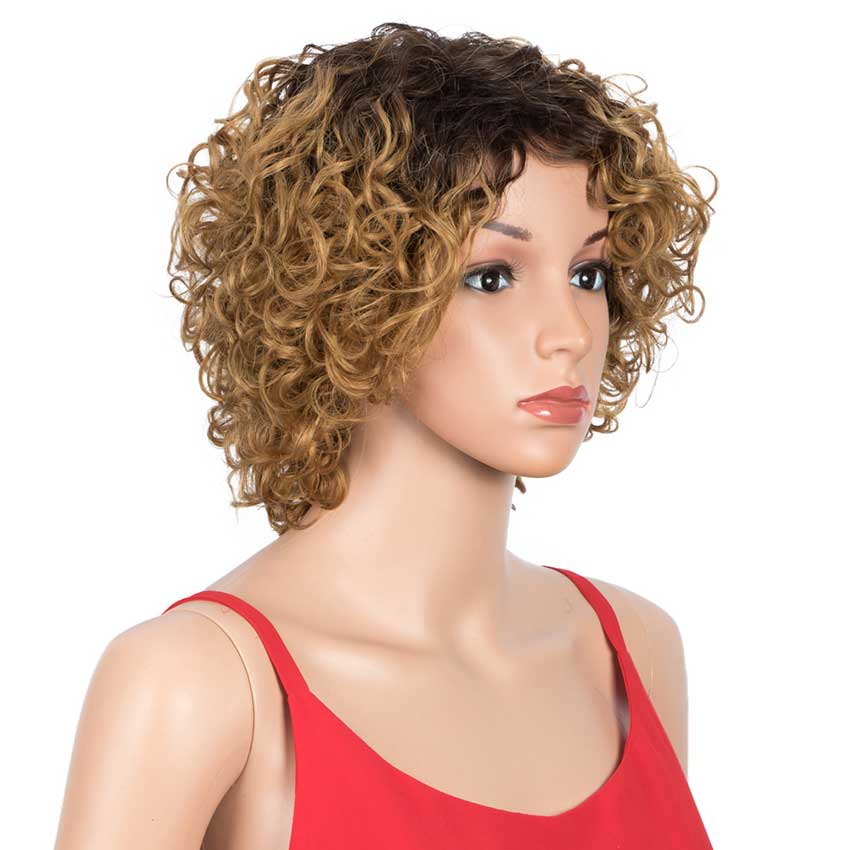Rebecca Fashion Short Bouncy Curly Wigs Human Hair for Women Cute Human Hair Bob Wigs Ombre Burgunry blonde Wigs