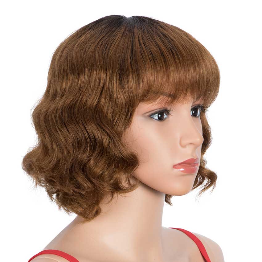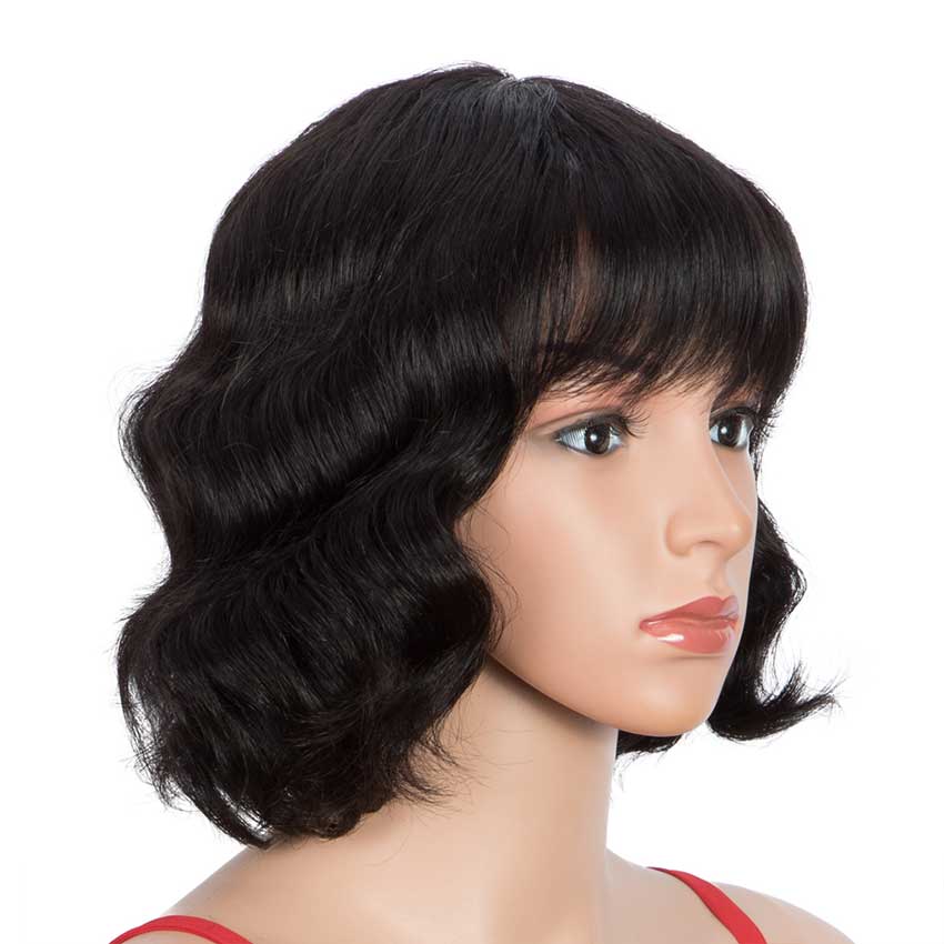 Rebecca Fashion Short Wig 9 inch Deep Wavy Human Hair Wig With Bangs