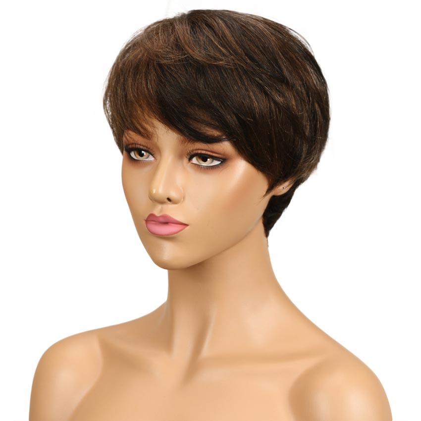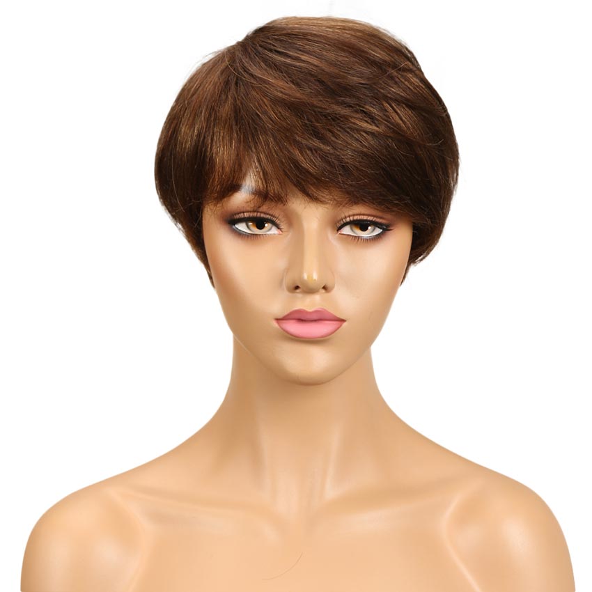 Rebecca Fashion Brown Pixie Cut Wig Short Style Human Hair Wigs With Bangs