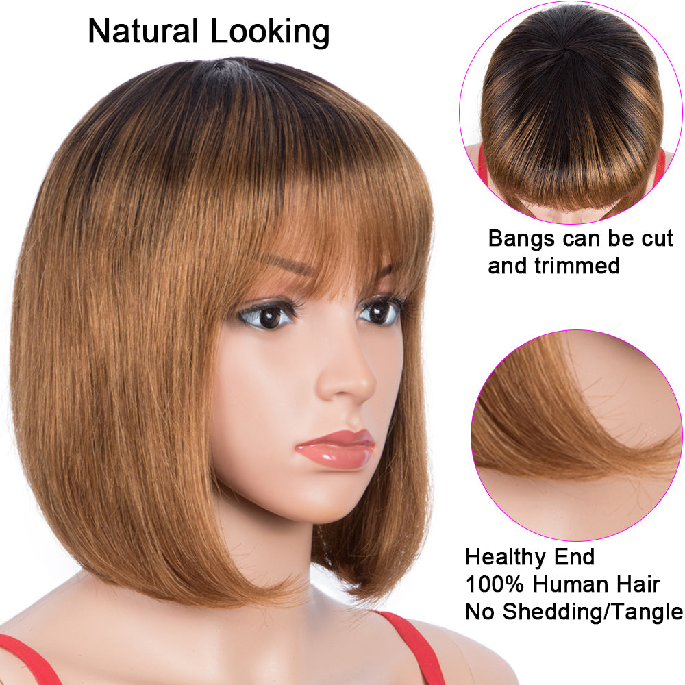 Rebecca Fashion Ombre Wig Basic Cap Wig T1B/30 Straight Wigs With Bangs Human Hair