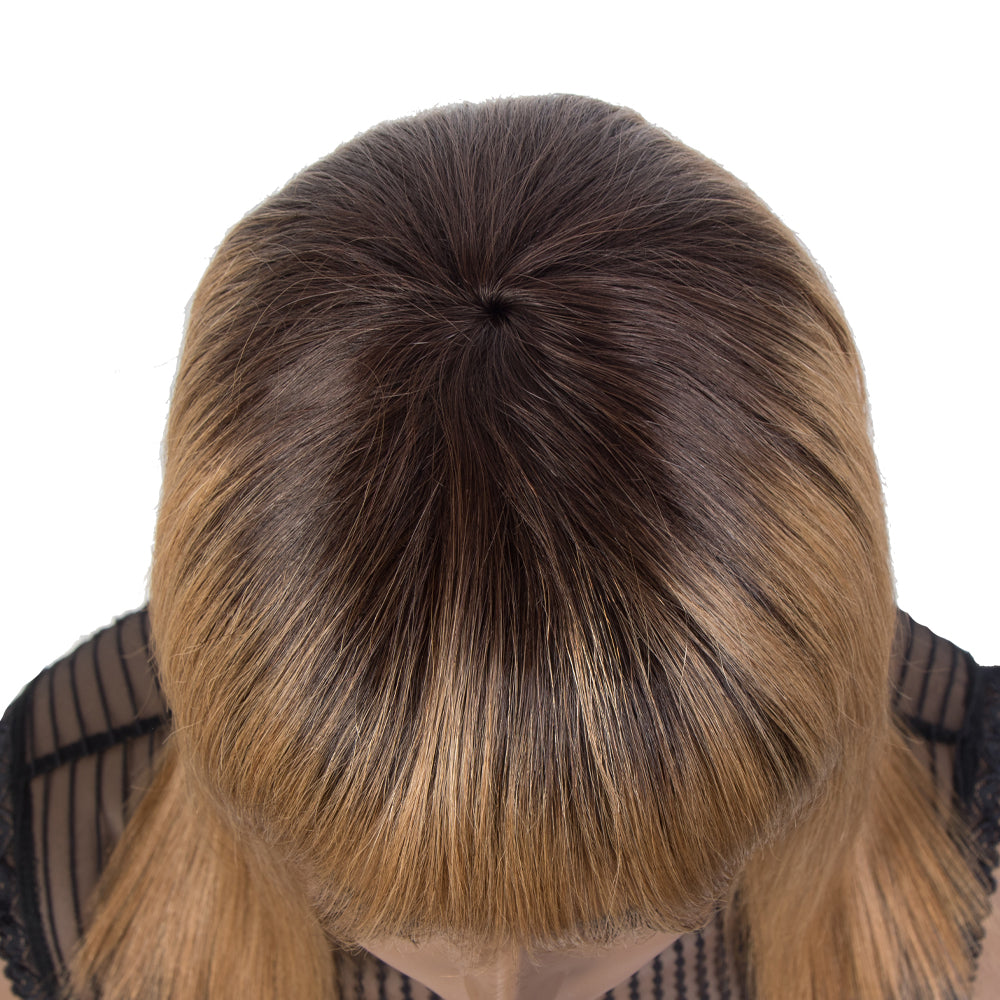 Rebecca Fashion Human Hair Wigs With Bangs For Women Non-lace Wig Ombre Honey Blonde Color