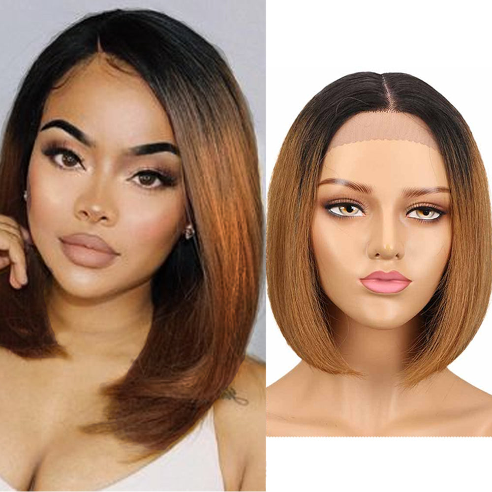 Rebecca Fashion Short Bob Lace Front Wigs Human Hair 10 inch Ombre brown Color