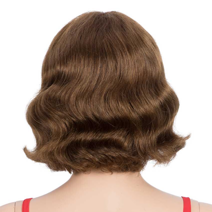 Rebecca Fashion Wavy Wig Bob 9 inch Human Hair Short Brown Wigs With Bangs