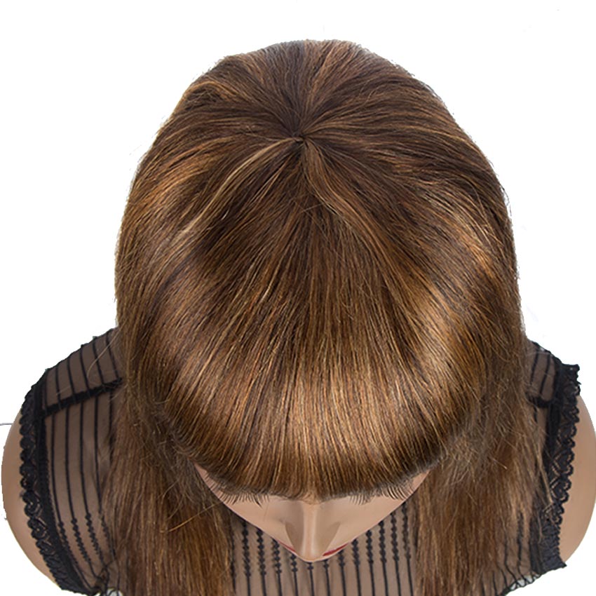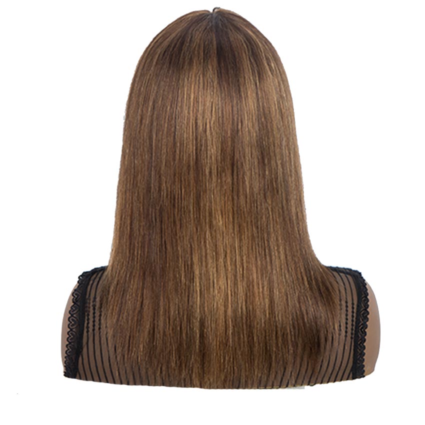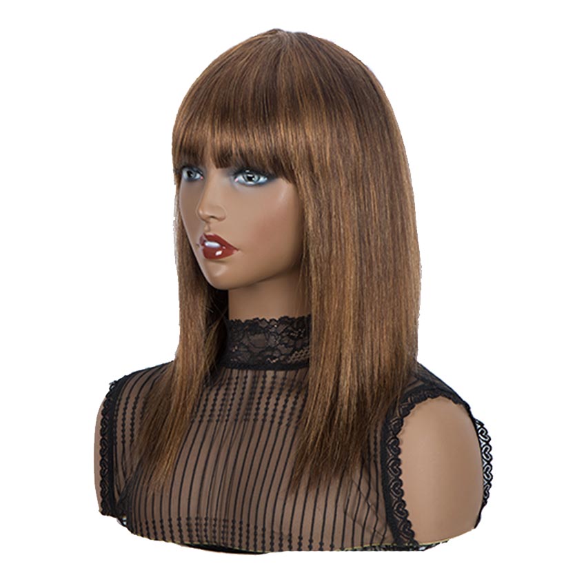 Rebecca Fashion Wig With Bangs Human Hair Brown Color Wigs Straight Hair Basic Cap Wig