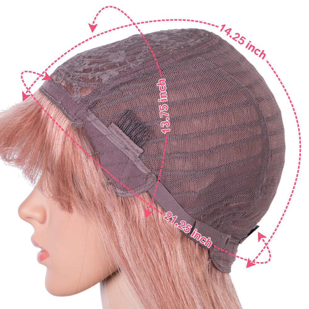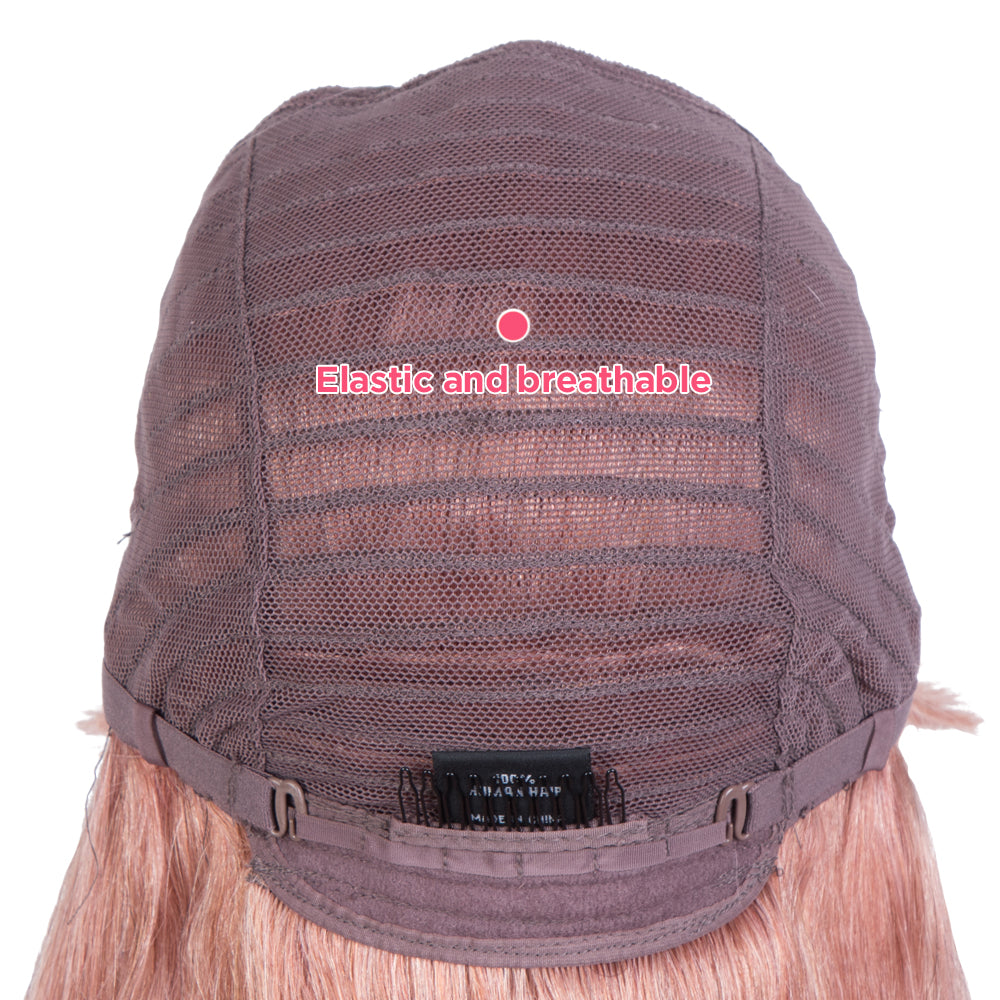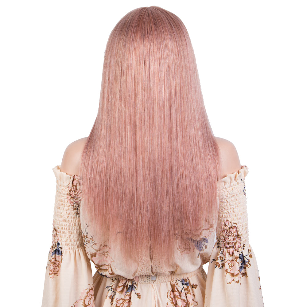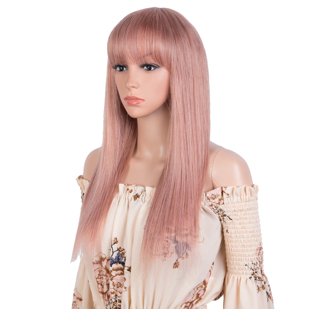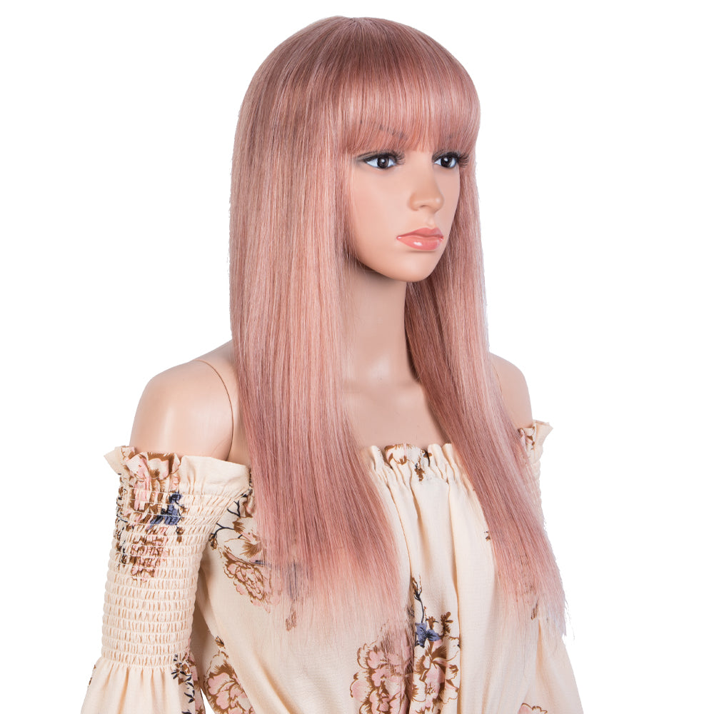 Rebecca Fashion Human Hair Wigs With Bangs For Women Pink Color Non-lace Wig
