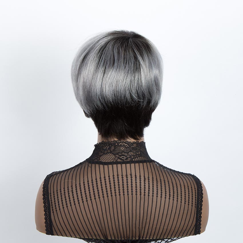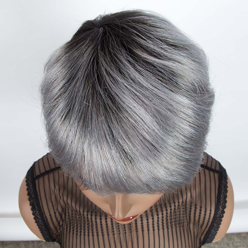 Rebecca Fashion Straight Bangs Style Pixie Cut 9 inch Gray Short Natural Wigs