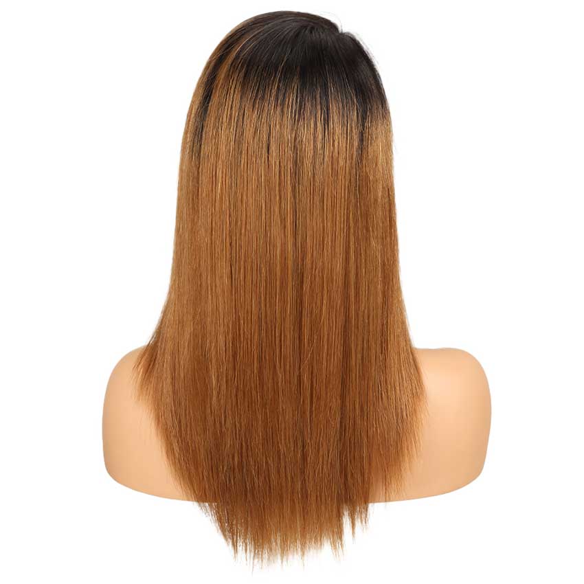 Rebecca Fashion Straight Human Hair Wig Ombre Brown Lace Side Part Wig 18 Inch
