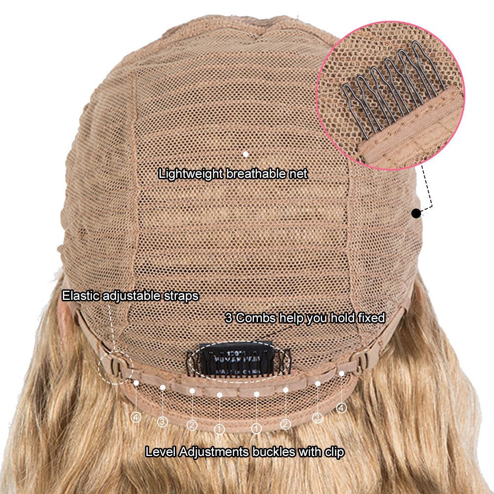 ※Cap Size: Medium size cap (Head circumference: 21.25-23 inches). 3 combs around at sides and back. Two adjustable straps at the back can be adjustable to fit most people.