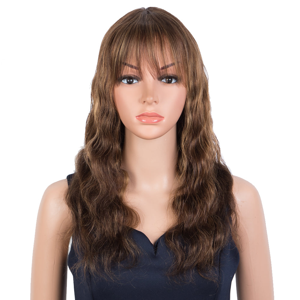 Rebecca Fashion Hightlight Brown Body Wave Human Hair Wigs with Bangs 100% High-quality Human Hair Wig with Bangs for Black Women 130% Density