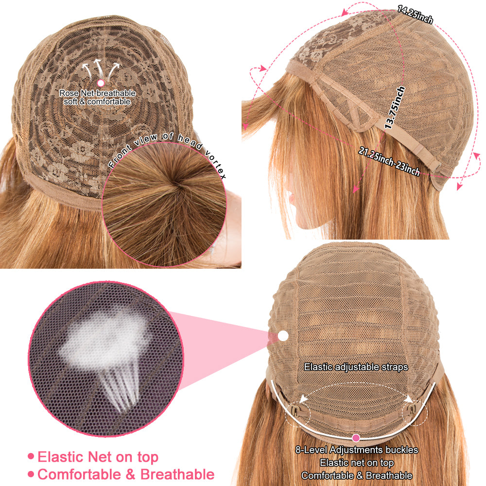 ※Wig Cap: Medium size cap (Head circumference: 21.25-23 inches), With two adjustment straps for a comfortable and secure fit.
