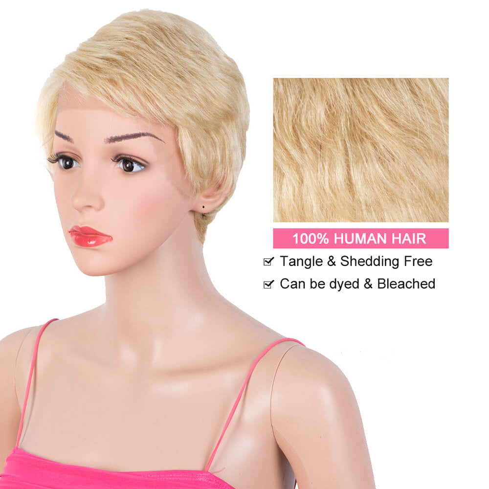 Rebecca Fashion Blonde Pixie Cut Wigs HD Lace Front Wigs Human Hair Short Straight Boy Cut Wigs for Women