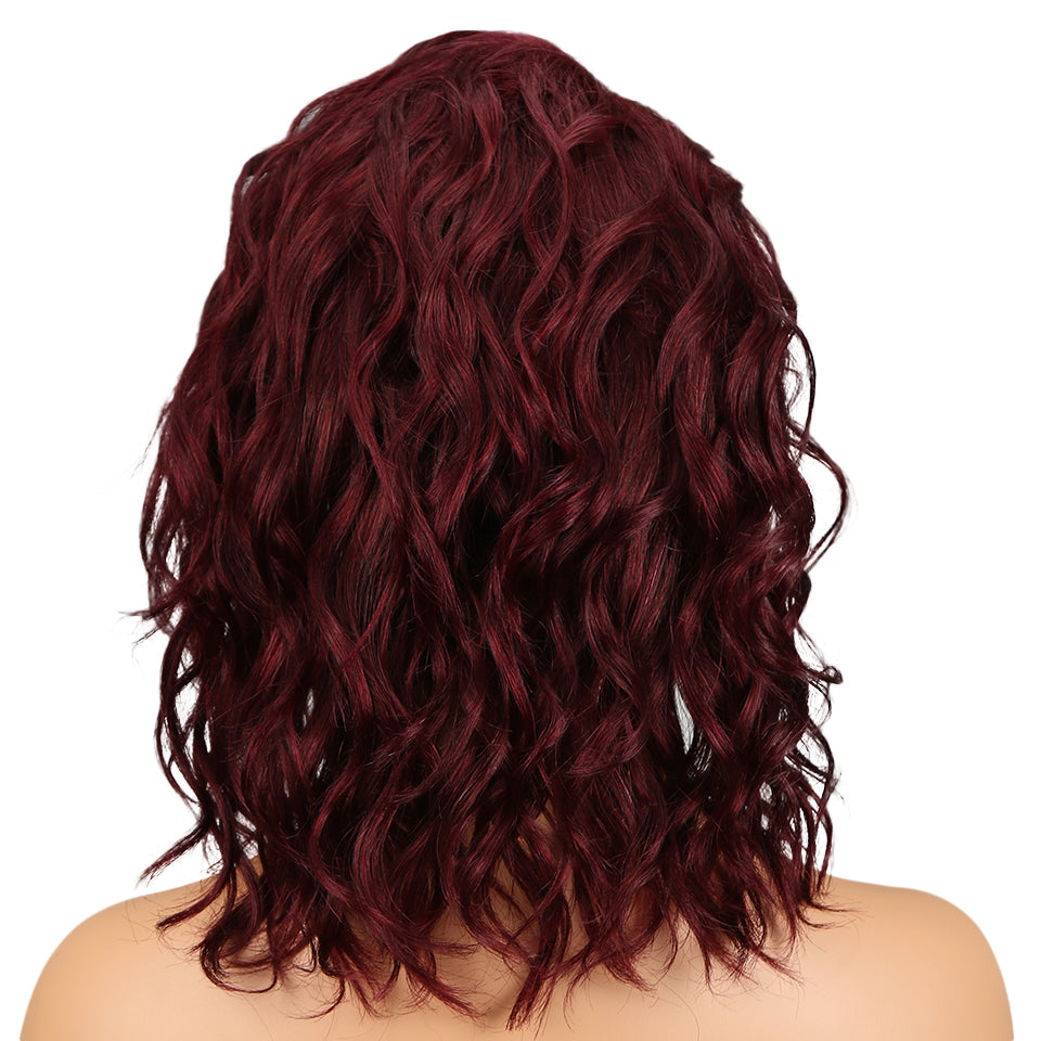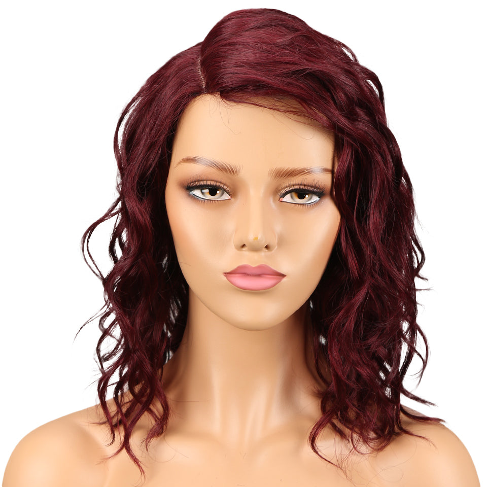 Rebecca Fashion Human Hair Lace Front Wigs 4.5 inch Side LacePart Wigs 14 inch Water Wavy Wig for Black Women Burgundy Red Color