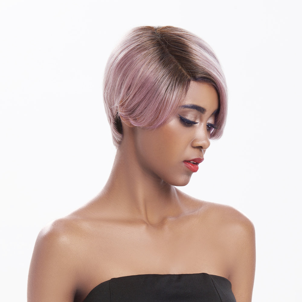Rebecca Fashion Human Hair Lace Front Wigs 5.5 inch Side LacePart Wigs Pixie Cut Bob Wig for Black Women Light Purple Color