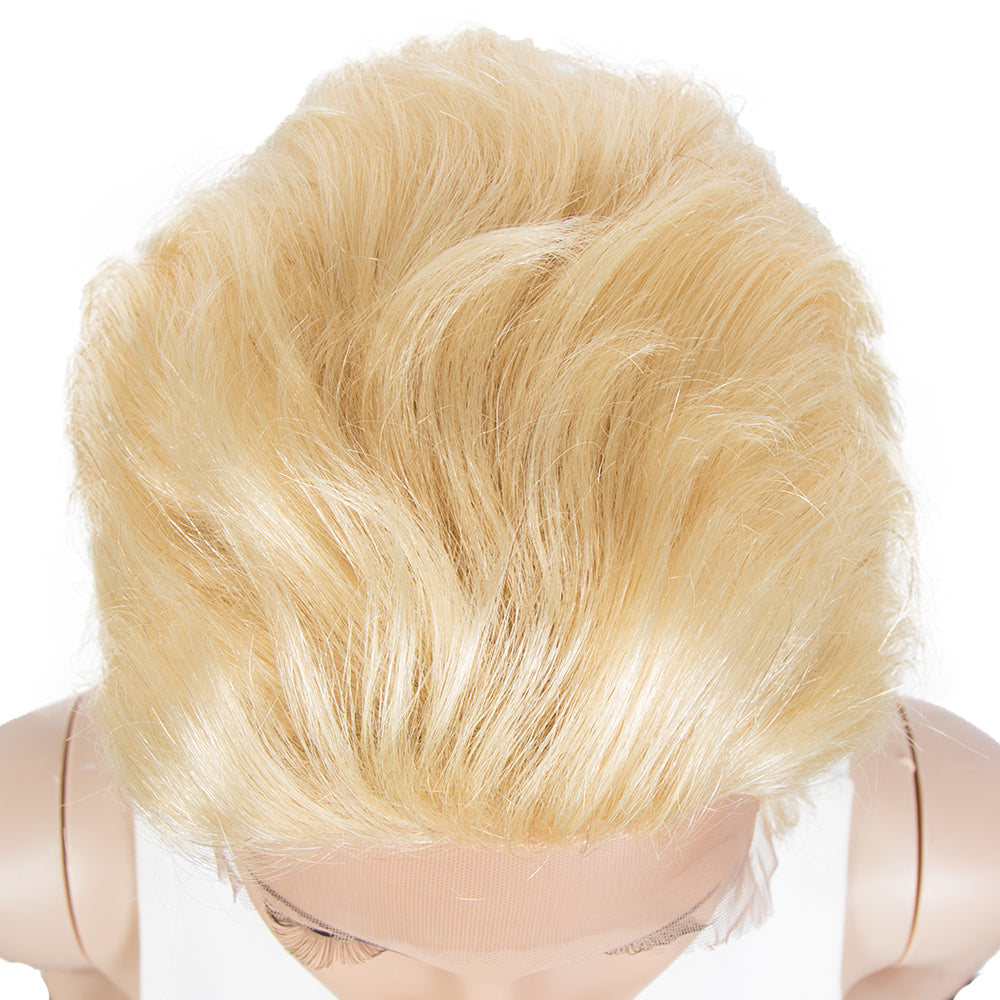 Rebecca Fashion Human Hair Pixie Cut Wigs Pixie Bob Wig with Hand-tied Hairline Blonde Color