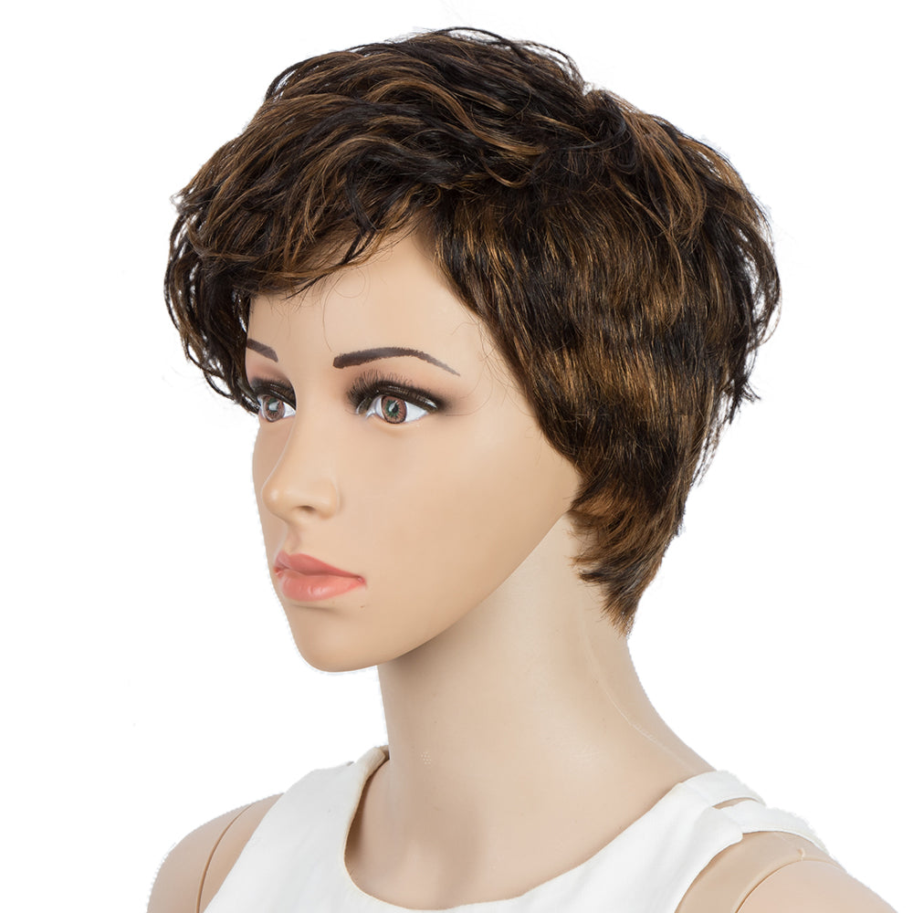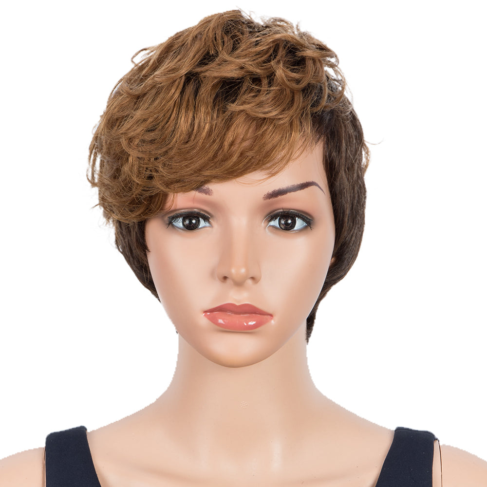 Rebecca Fashion Human Hair Wigs For Women Pixie Cut Wigs 9 Inch Curly Wig Brown Color