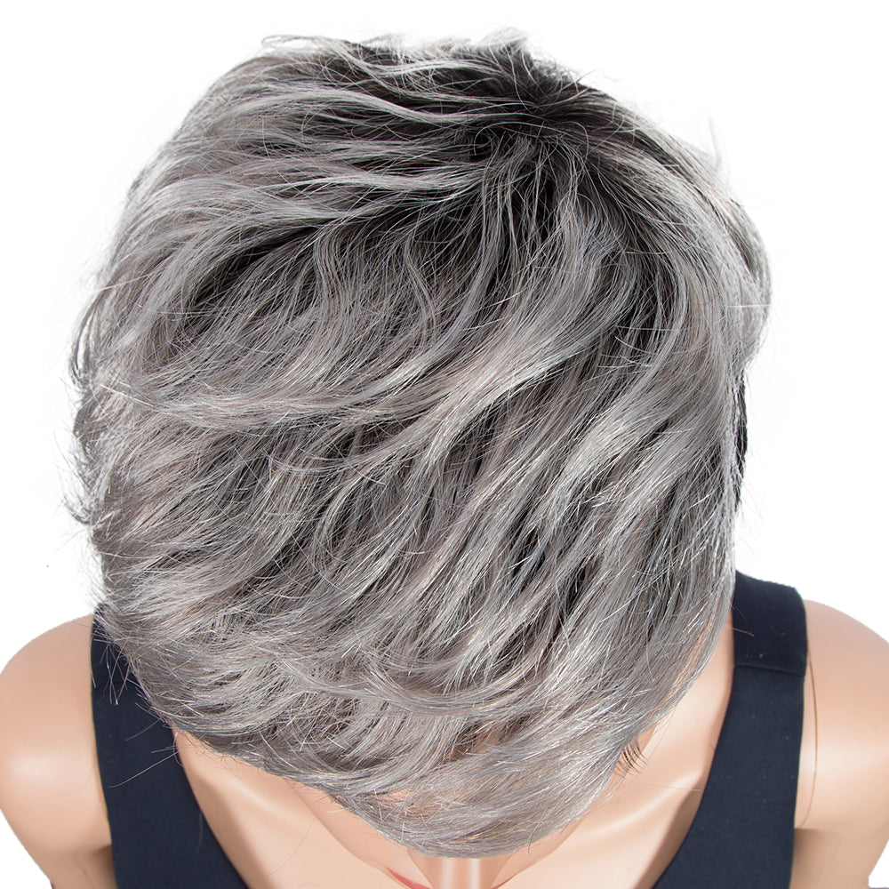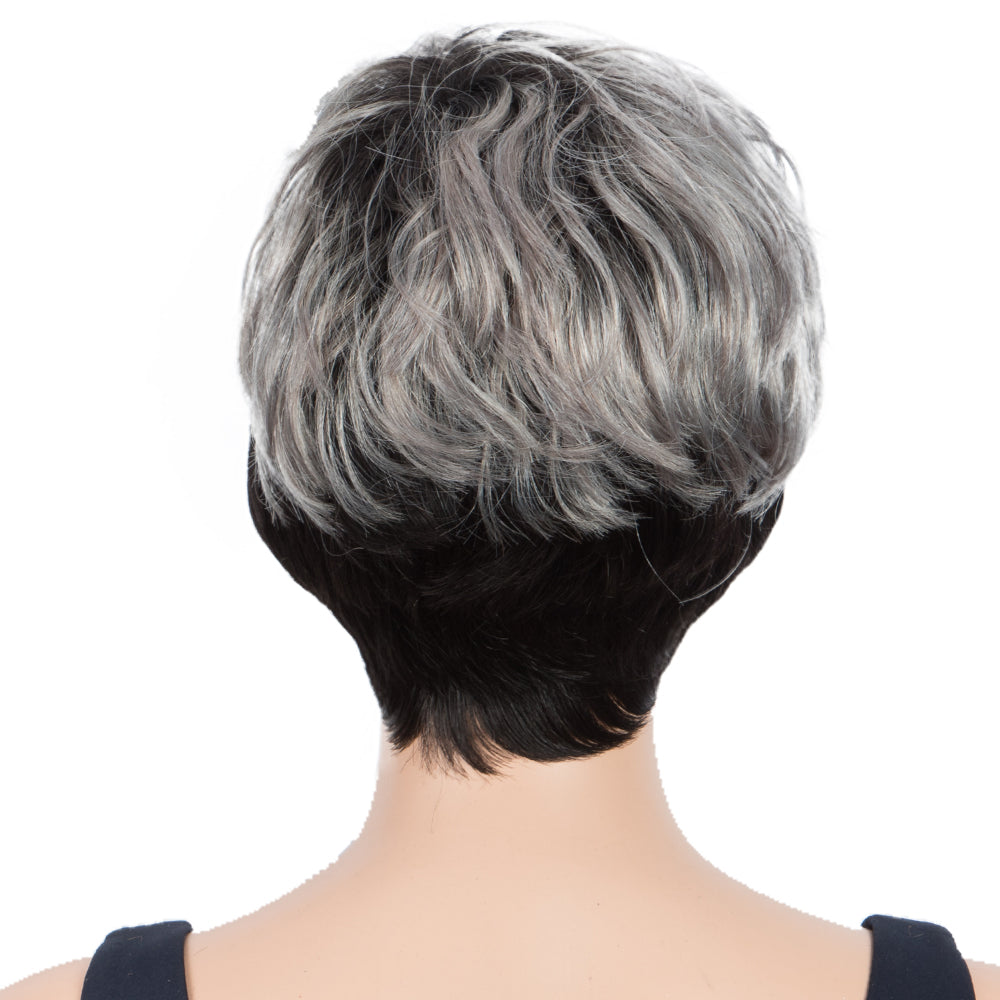 Rebecca Fashion Human Hair Wigs For Women Pixie Cut Wigs 9 Inch Curly Wig Grey Color