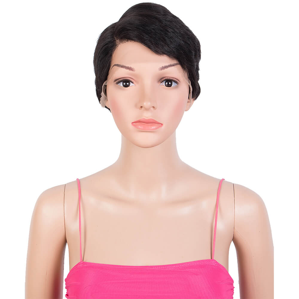 Rebecca Fashion Natural Black Pixie Cut Wigs HD Lace Front Wigs Human Hair Short Straight Boy Cut Wigs for Women