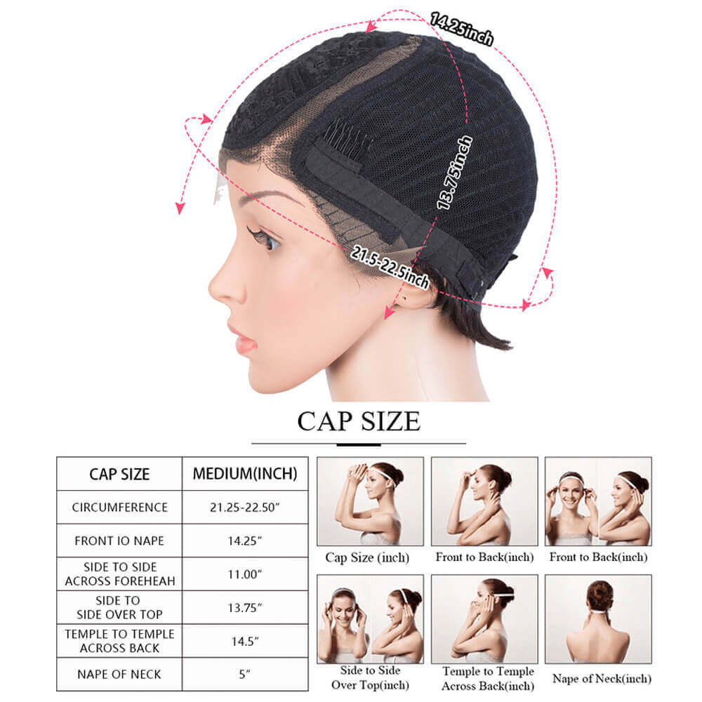 ※Wig Cap: Medium size cap (Head circumference: 21.25-23 inches), With two adjustment straps for a comfortable and secure fit.