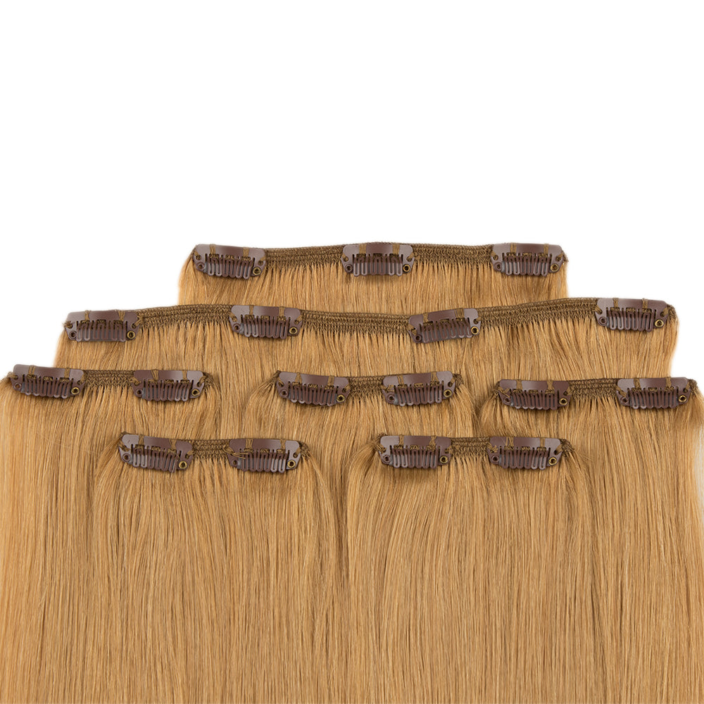 Rebecca Fashion Remy Clip In Human Hair Extensions Straight Clip on Human Hair Brown Blonde Color 7 Pcs