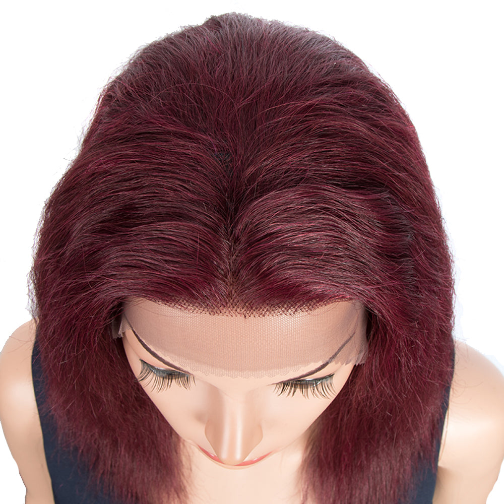 Rebecca Fashion Remy Human Hair Wigs 13x2 Lace Frontal Wigs Straight Hair Wig 150% Density Burgundy Red Color