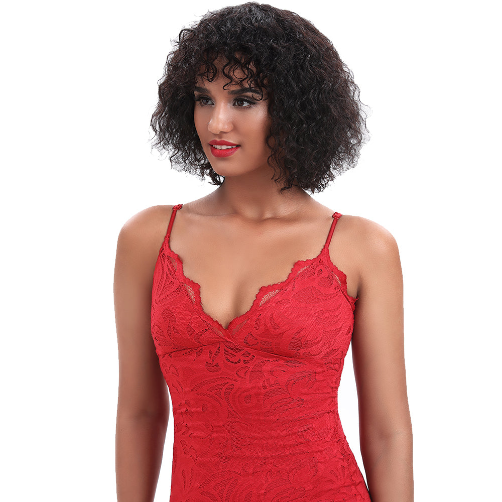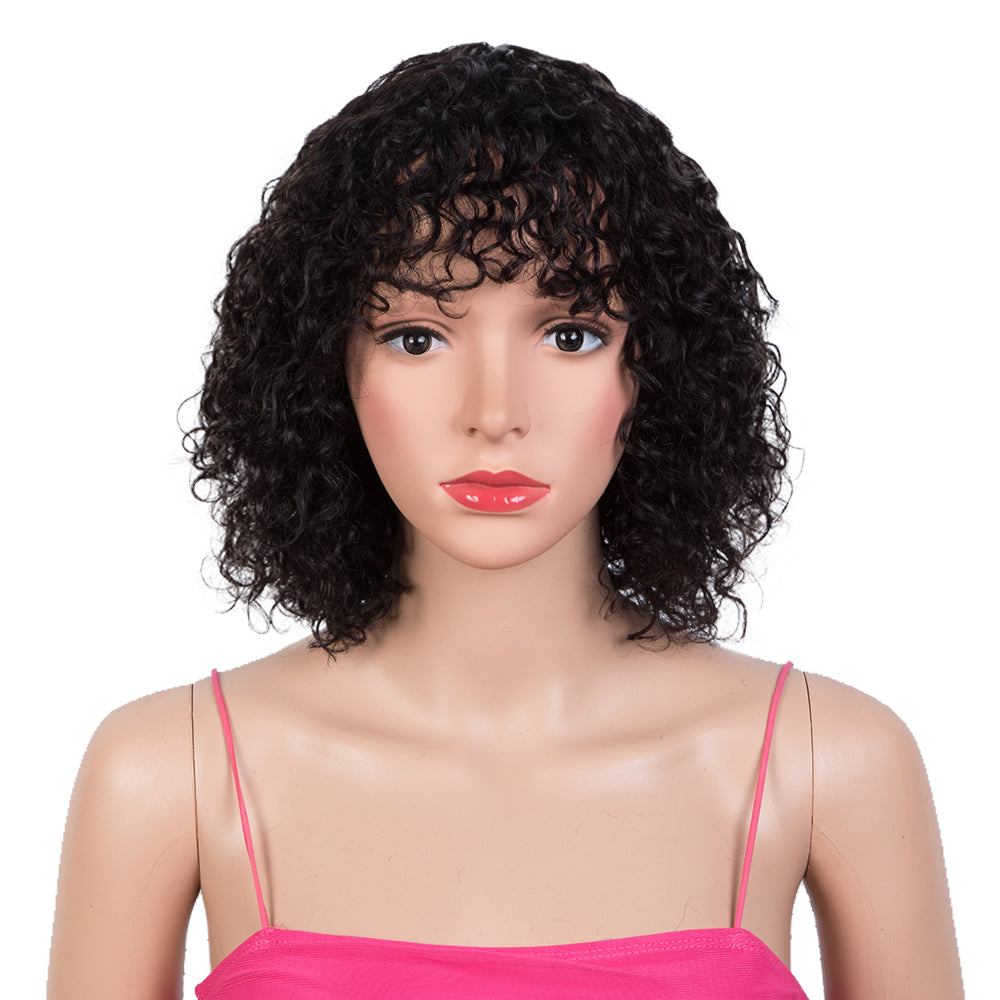 Rebecca Fashion Short Curly Wigs with Bangs Kinky Curly Wigs for Black Women 14 Inch Virgin Remy Natural Black Wig Can Be Restyled