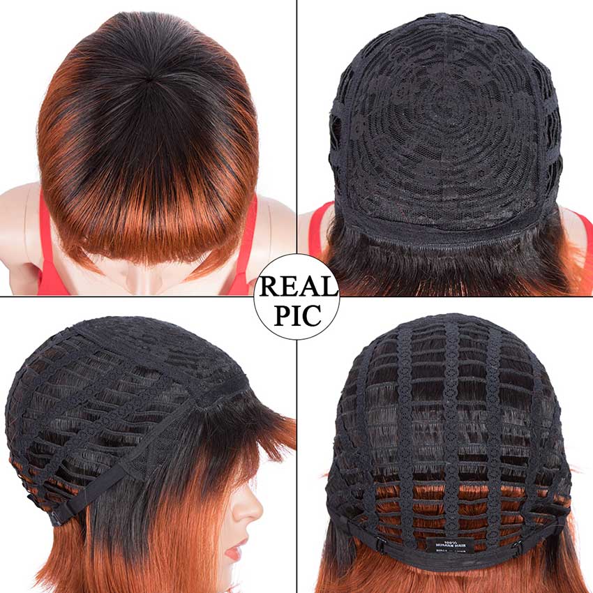 ※Hair Style: Bob Wigs with Bangs Human Hair.