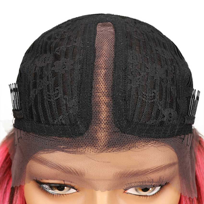 Rebecca Fashion Ombre Pink Bob Wig Middle Part 10 Inch Virgin Human Hair Wigs