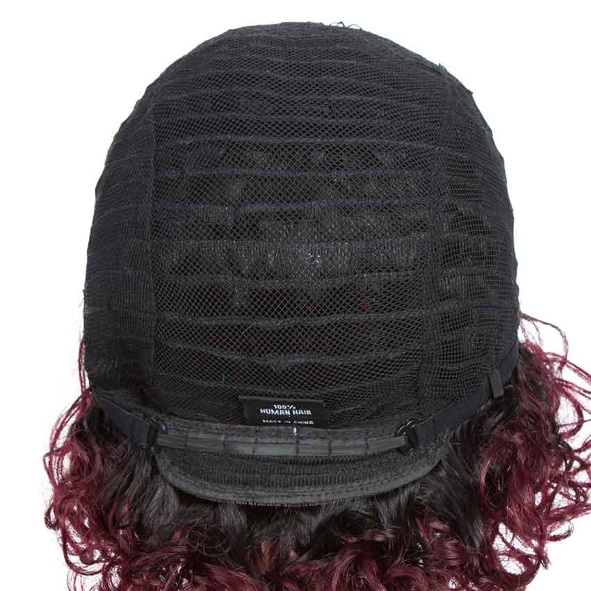Rebecca Fashion Short Wavy Bob Wigs Ombre Color Black Root to Red Human Hair Wigs