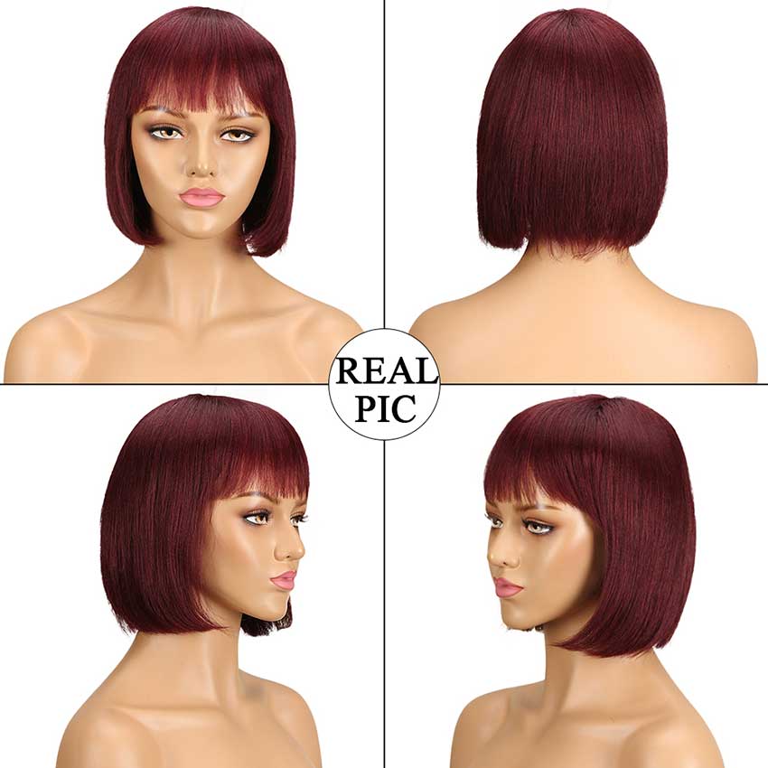 Rebecca Fashion Bob Wig Short Human Hair Red Wigs With Bangs