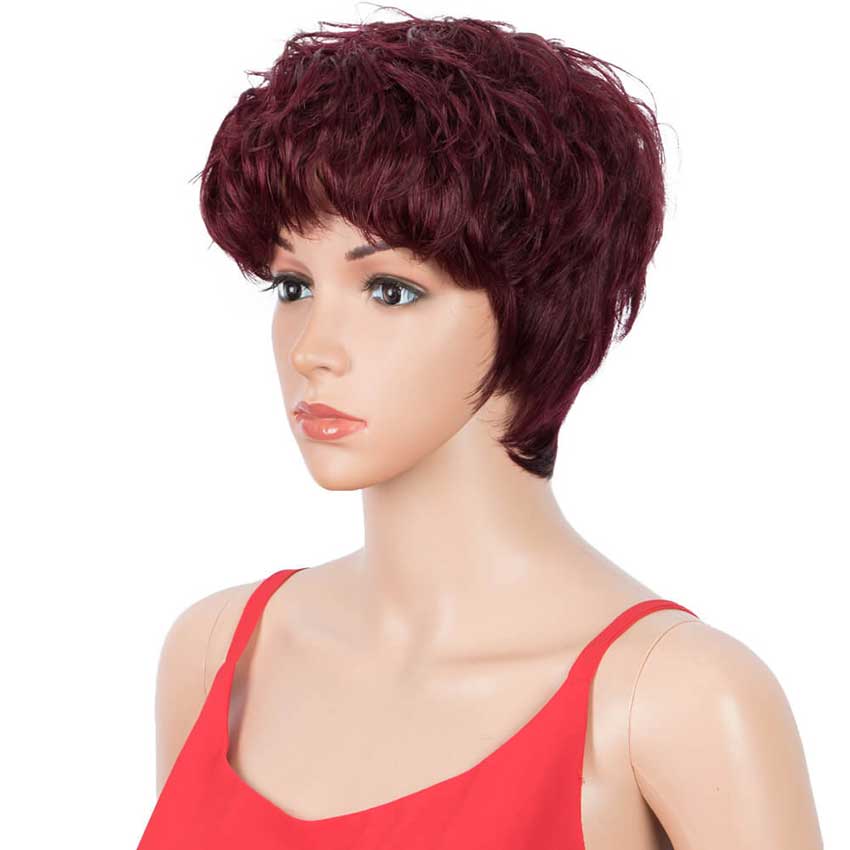 Rebecca Fashion Red Wine Pixie Cut Short Wig Human Hair Wigs 9 inch