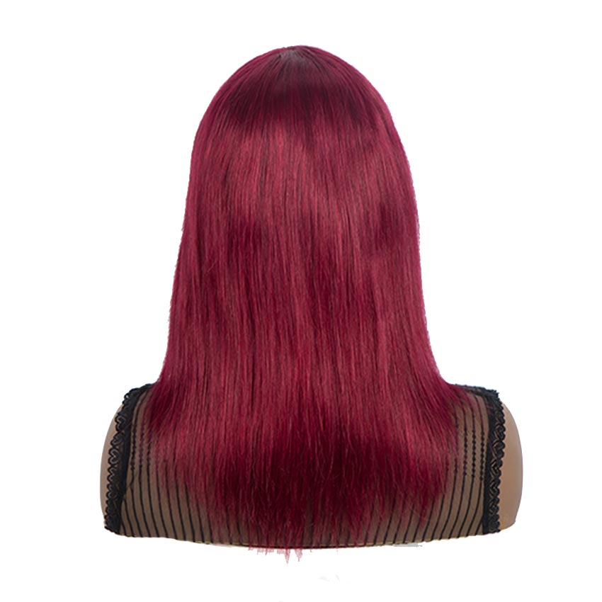 Rebecca Fashion Burgundy Red Straight Human Hair Wigs With Bangs Basic Cap Wigs
