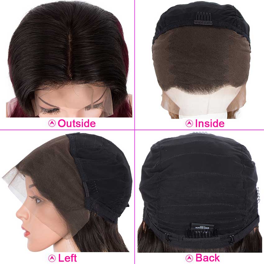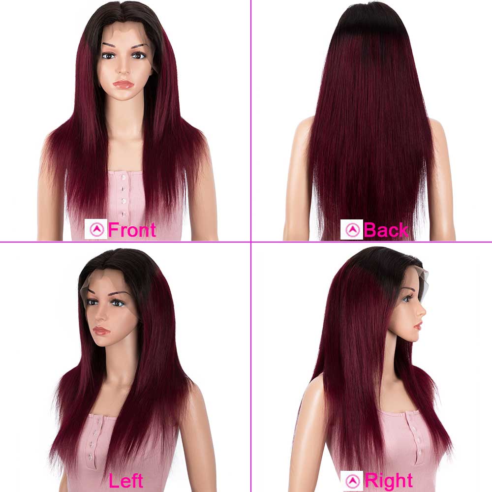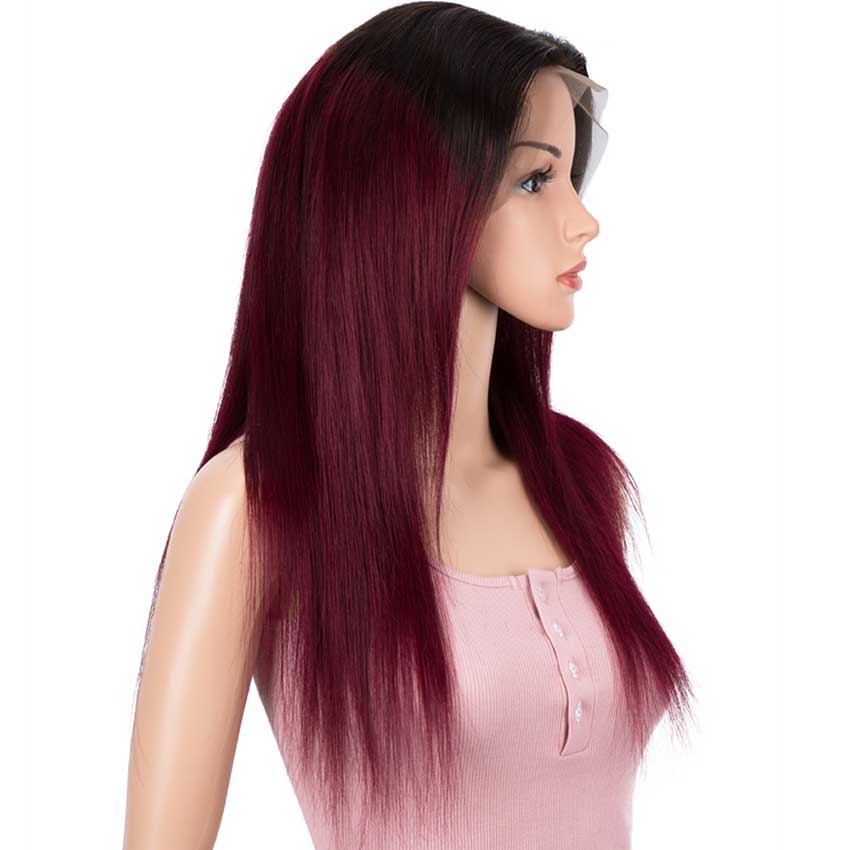 Rebecca Fashion Straight 13x4 Lace Front Wig Ombre Burgundy Red Human Hair Wigs