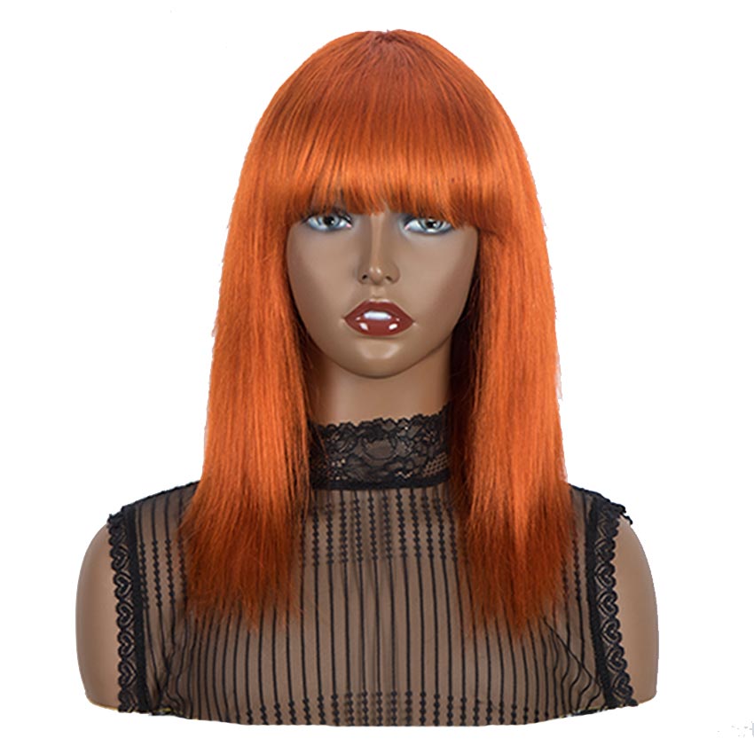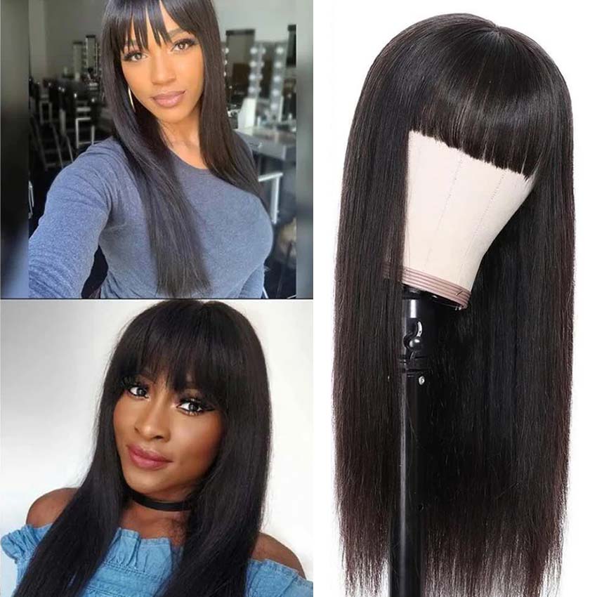 ※Hair Style: Straight human hair wig with bangs.