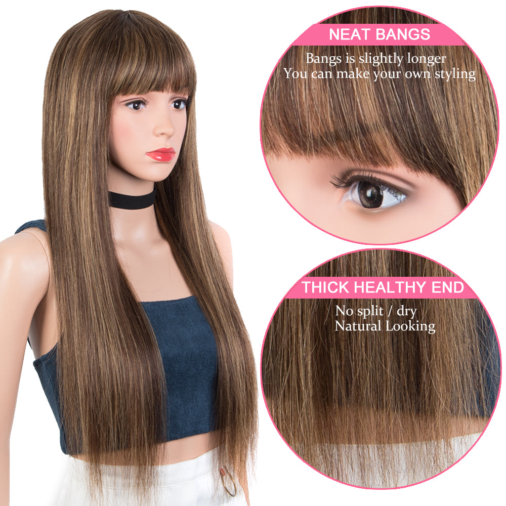 Rebacca Fashion Ombre Brown Color Straight Human Hair Wigs With Bangs For Women Full Machine Made Human Hair Wigs