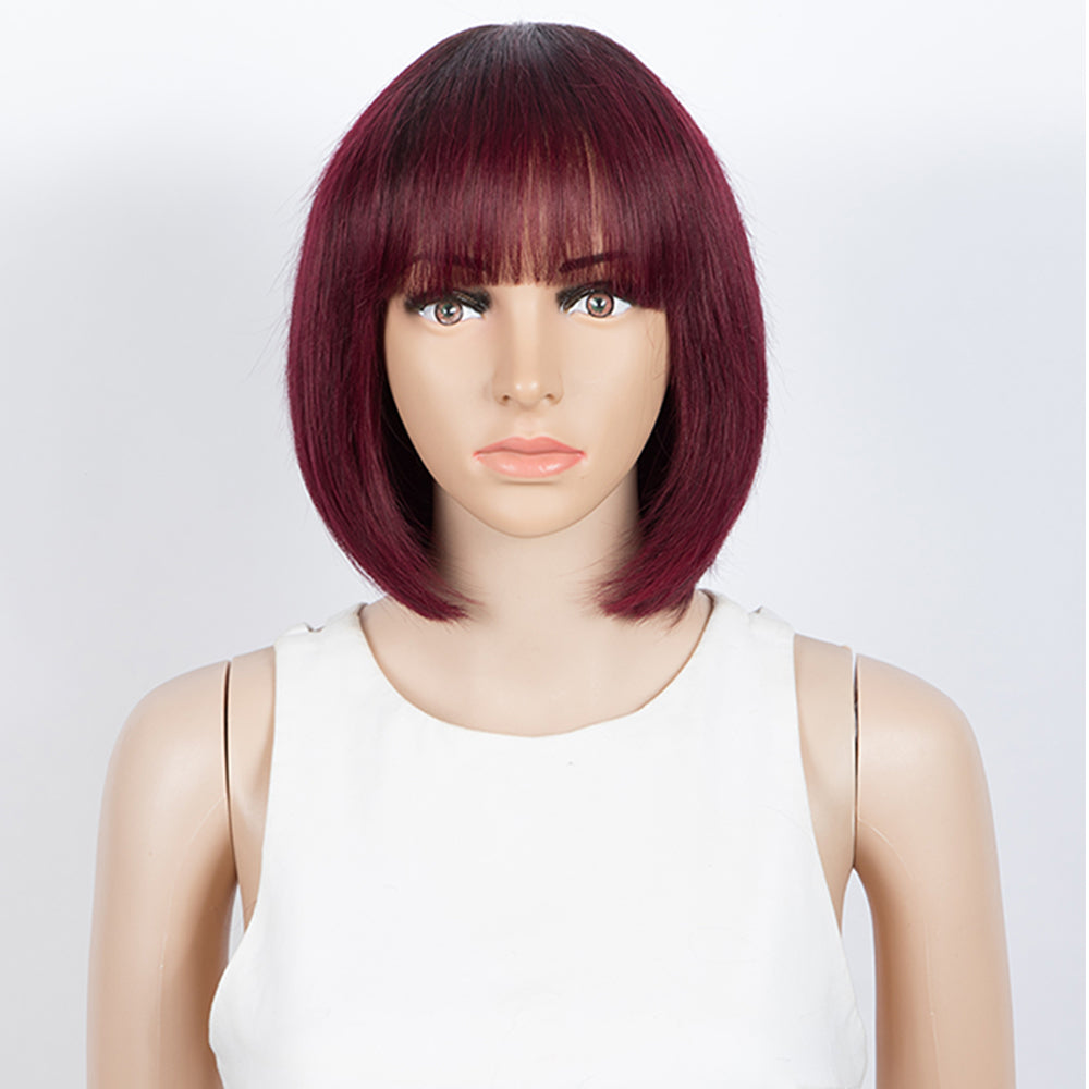※Hair Style: Bob Wigs with Bangs Human Hair.