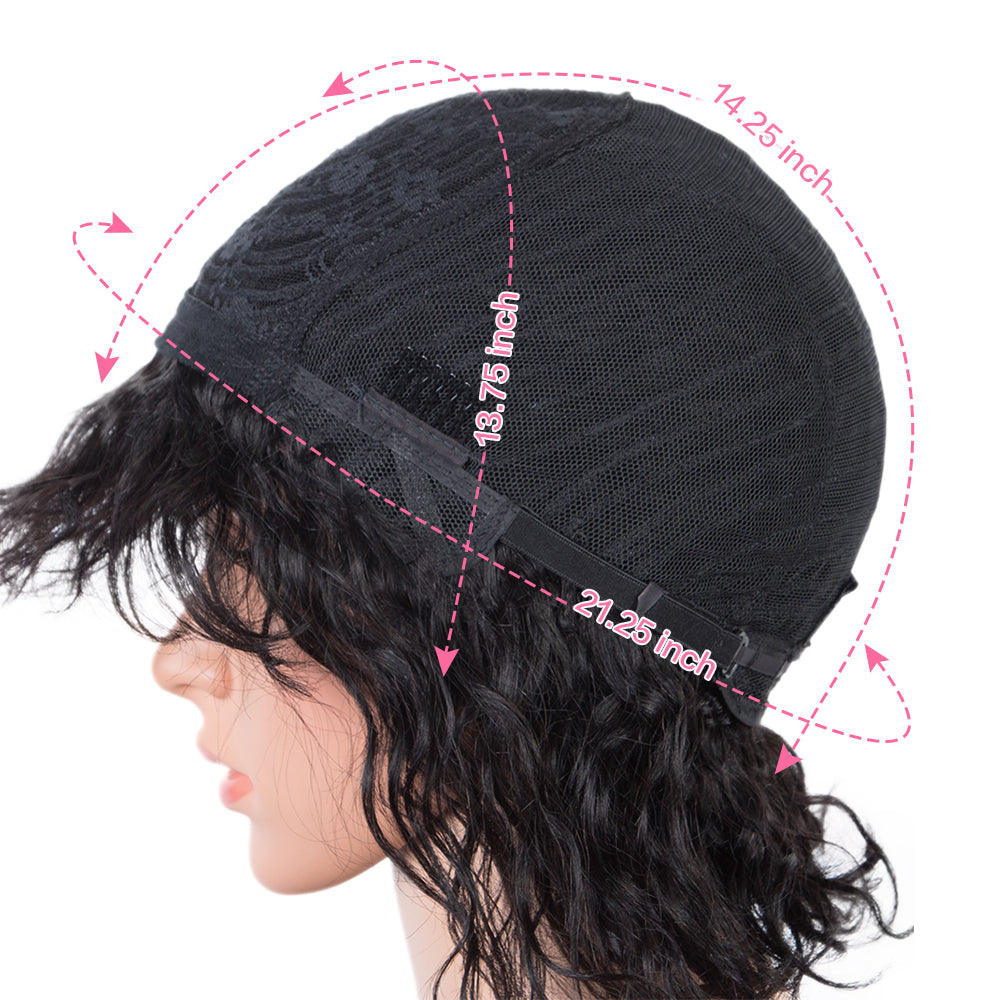 ※Hair Style: Curly human hair wig with bangs.